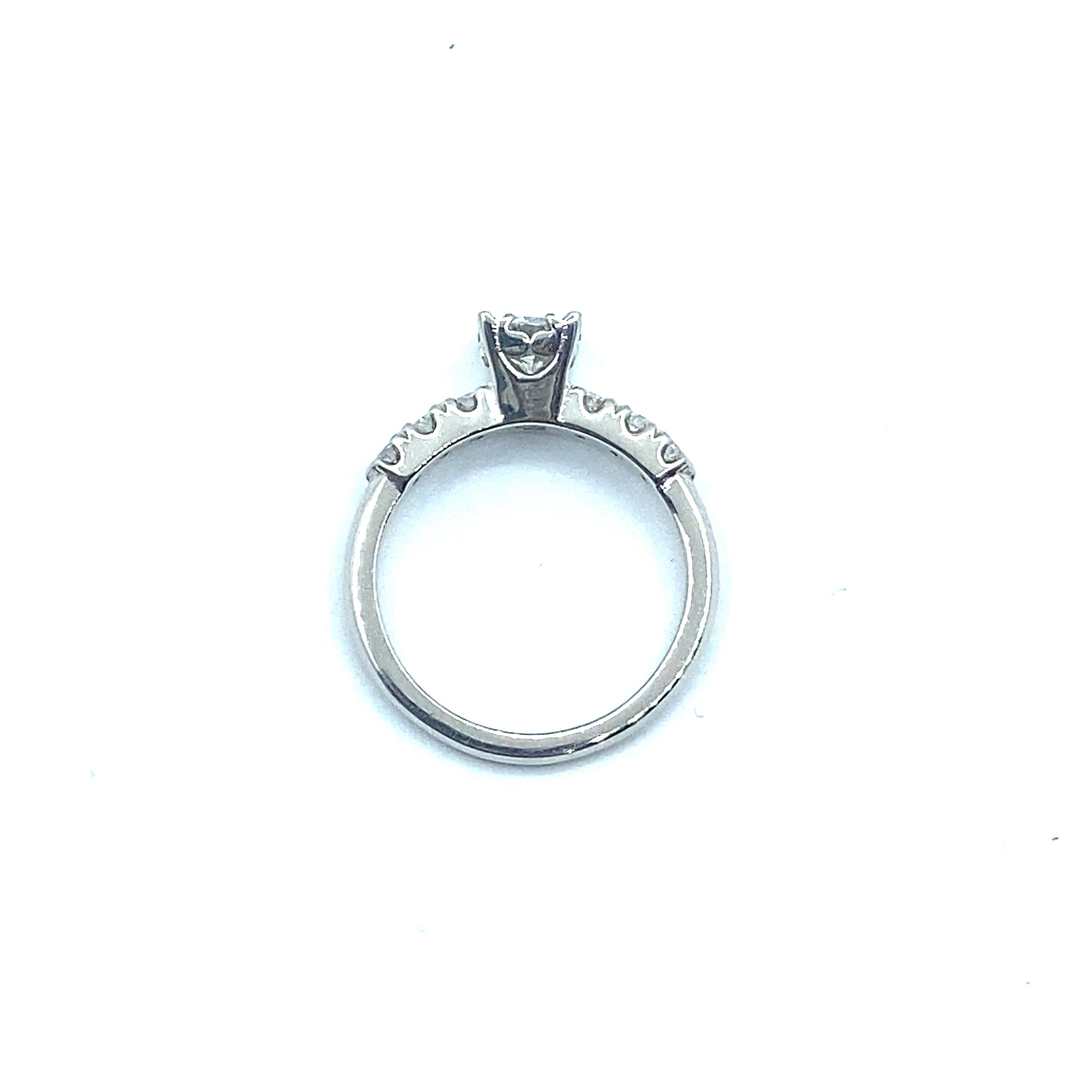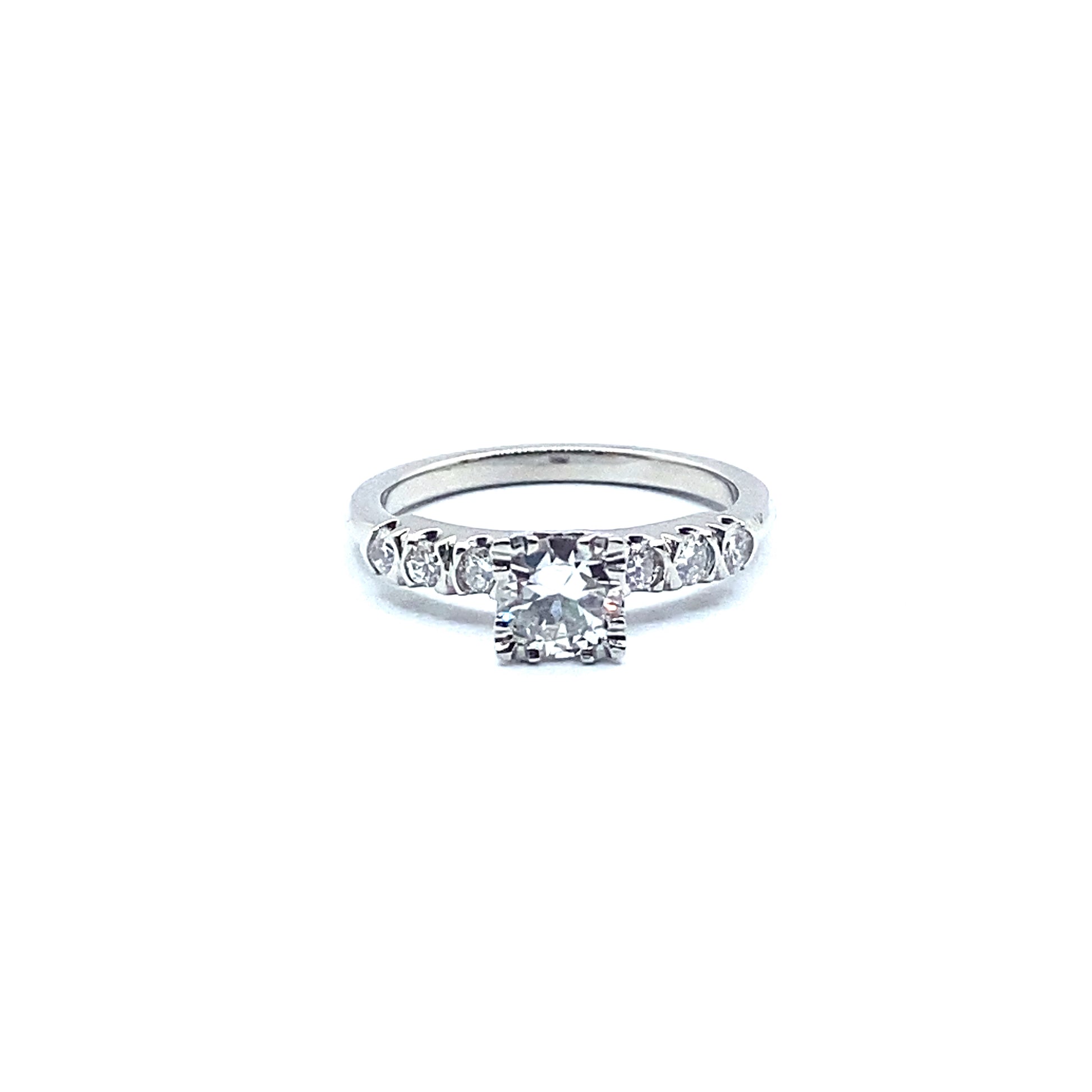 Centre stone in the pictures - 5mm 0.50cts centre stone. Side stones - 2mm 0.03cts each, so in total 0.18cts.