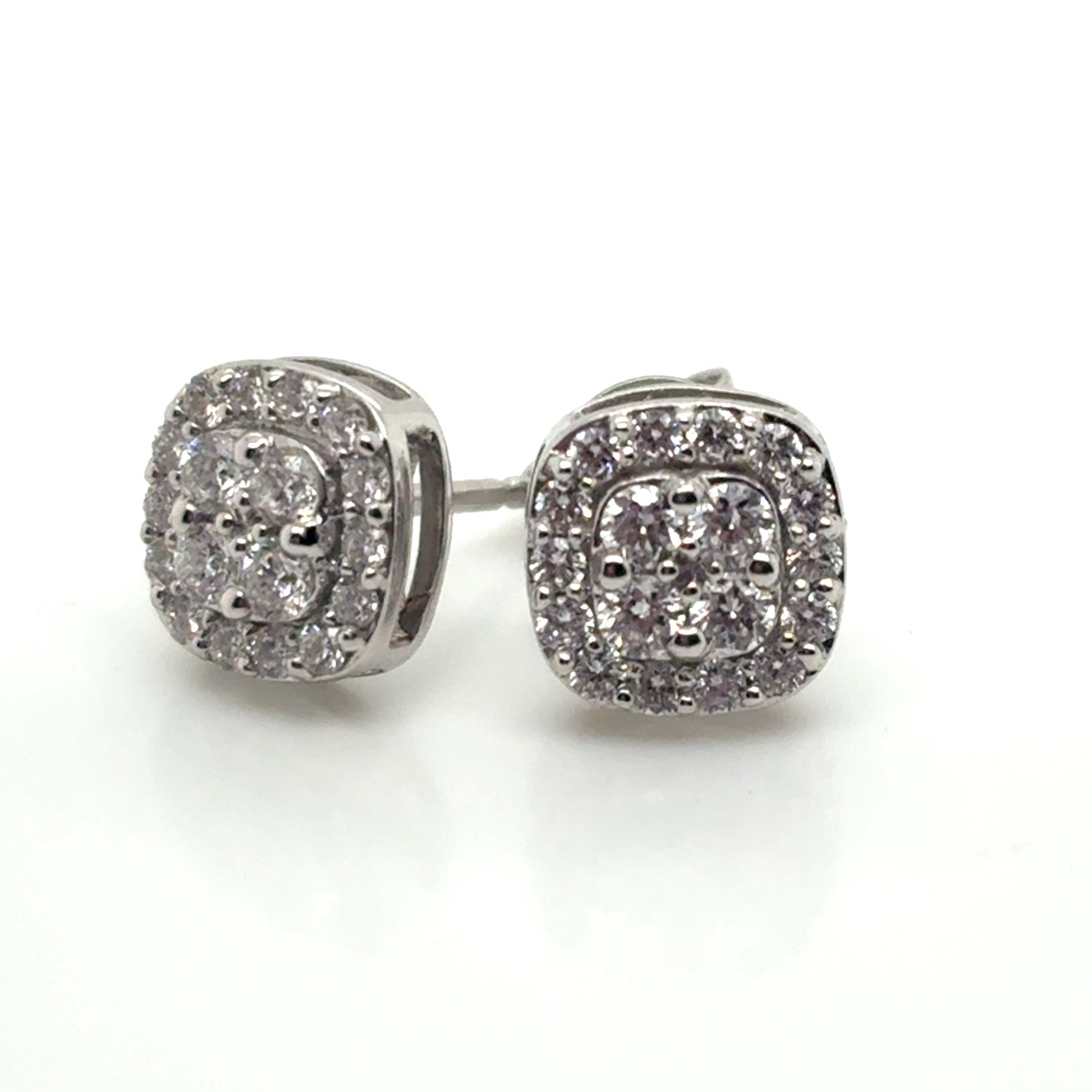 18ct White Gold Diamond Cluster Halo Earrings Cushion Shaped
