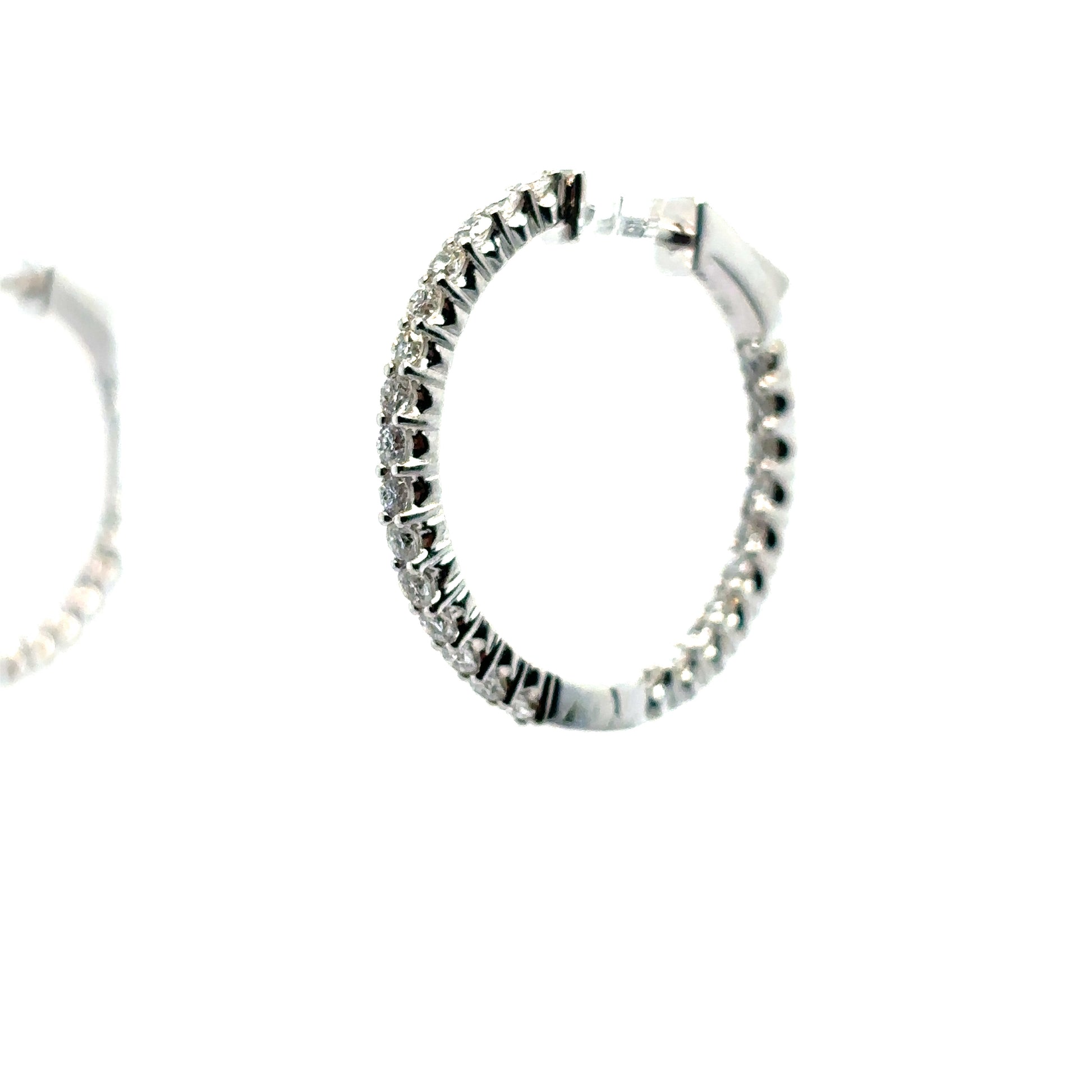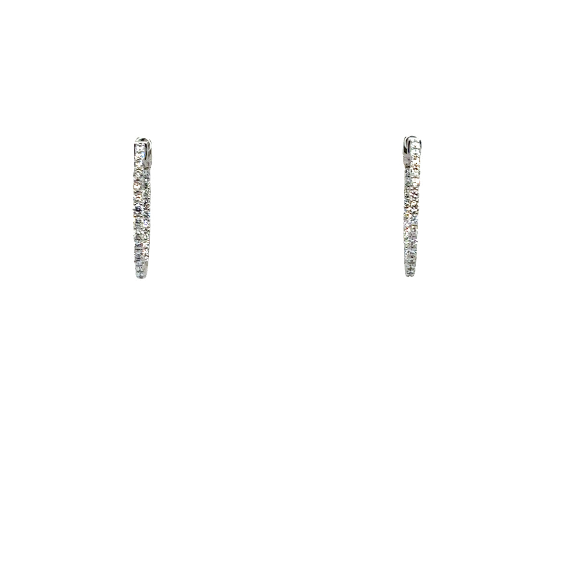 Round Brilliant, lab grown diamond, claw set hoop earrings. Set inside and out E-F colour, VS clarity, 0.95ct total weight. 9ct White Gold