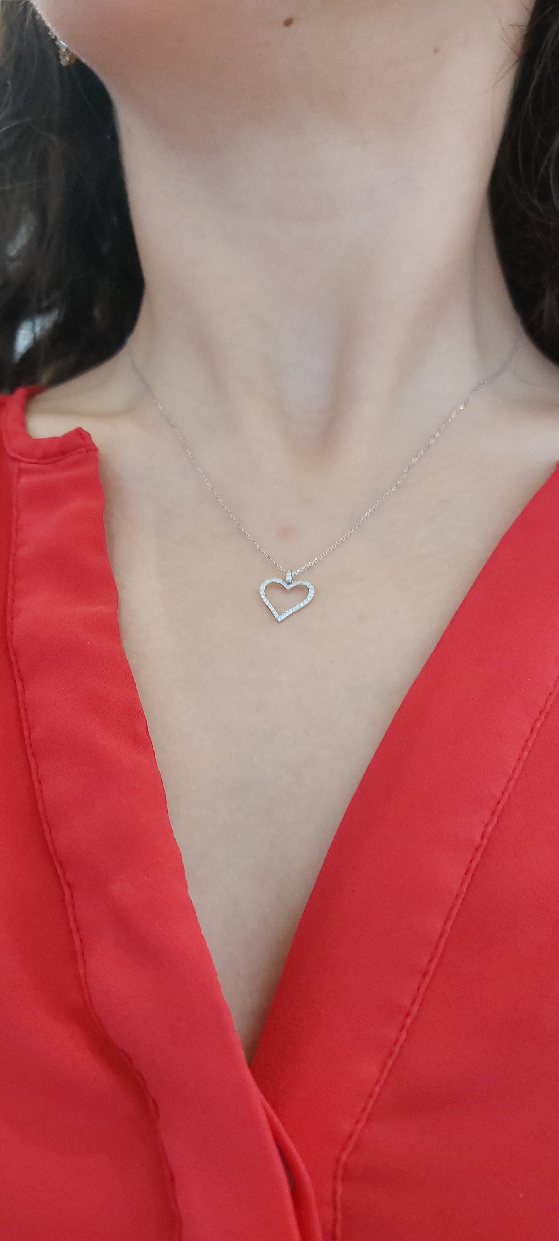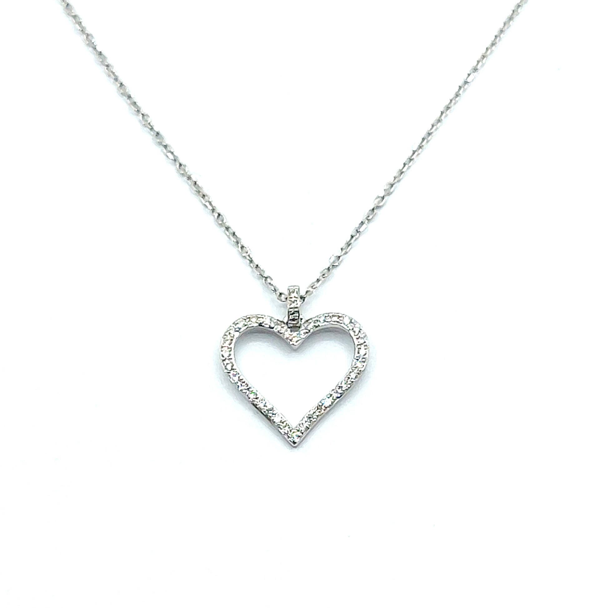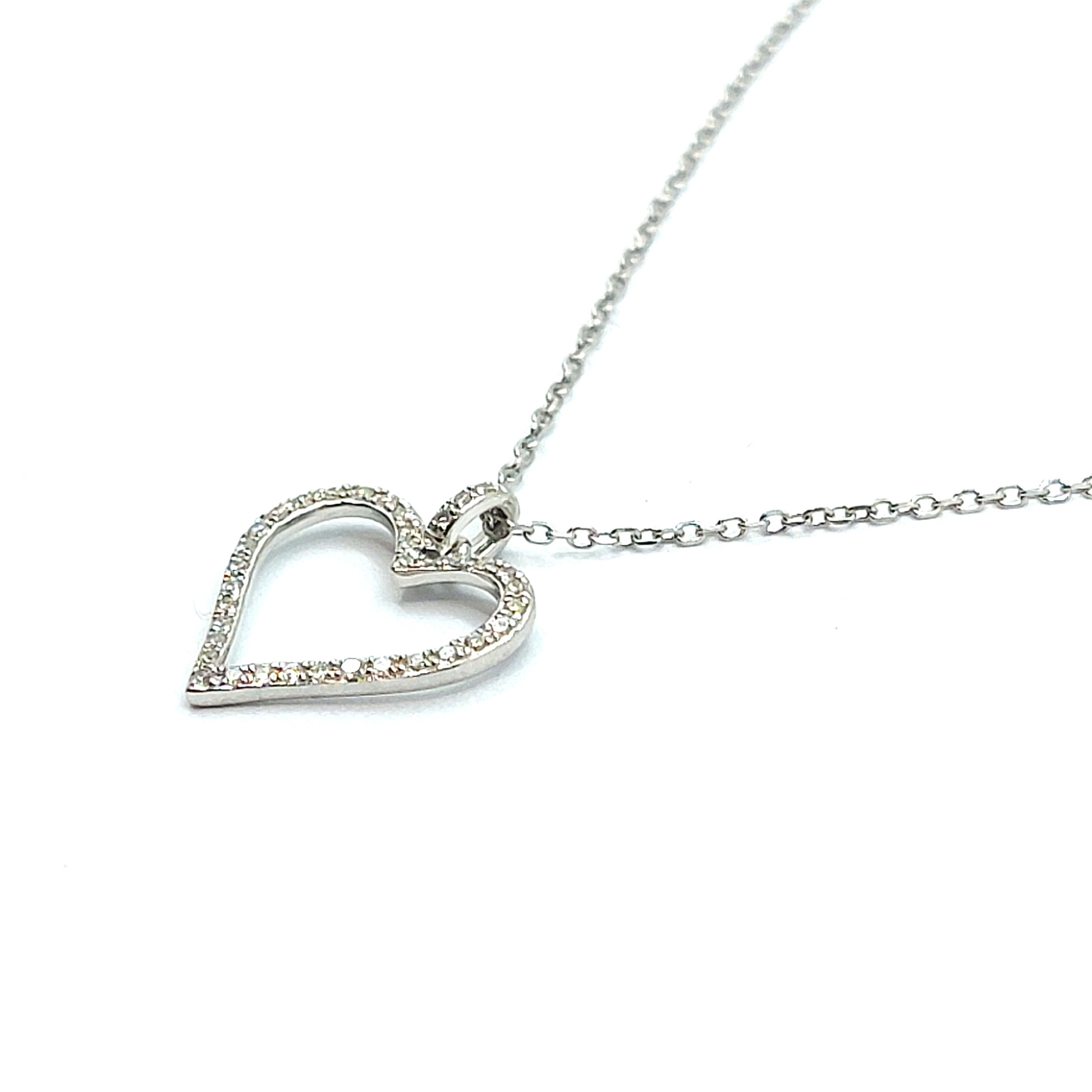 9ct White Gold Diamond Heart Outline Grain Pendant: 0.09cts, F-G VS;
