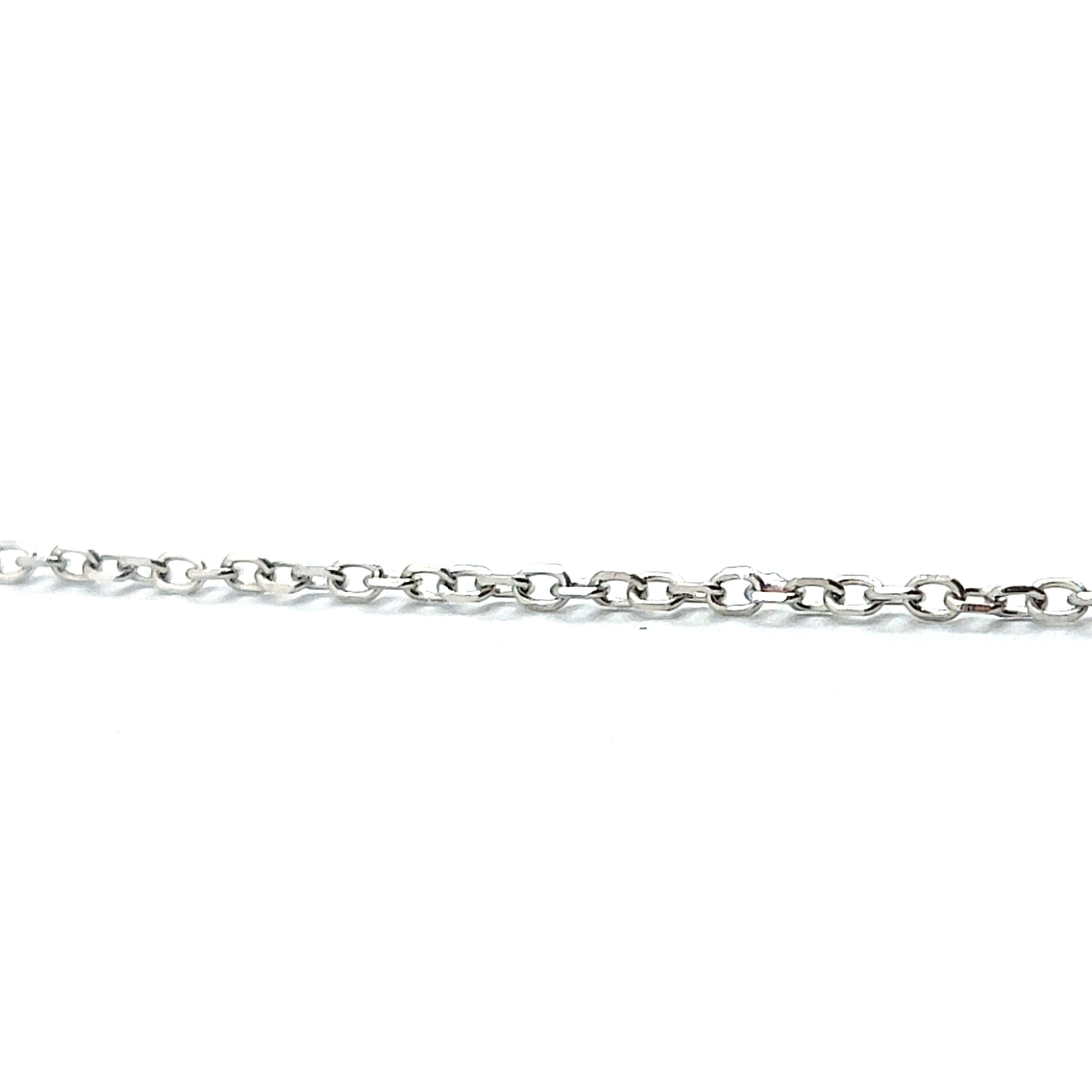 9ct White Gold Rolo Chain, 1mm wide and 18" long, with a 7mm lobster clasp.