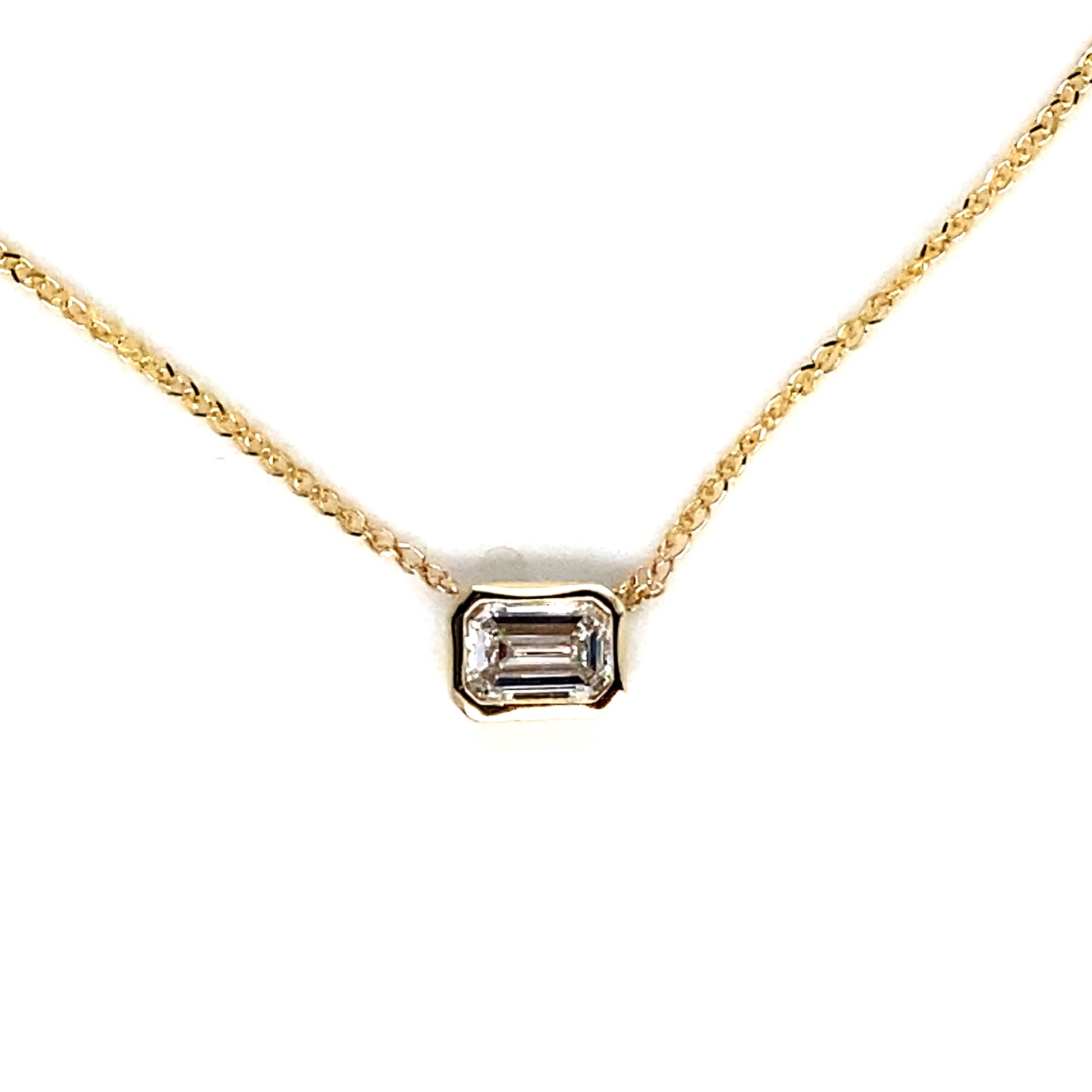 Emerald Cut 0.66ct Diamond Bezel Set 9ct Yellow Gold Necklace