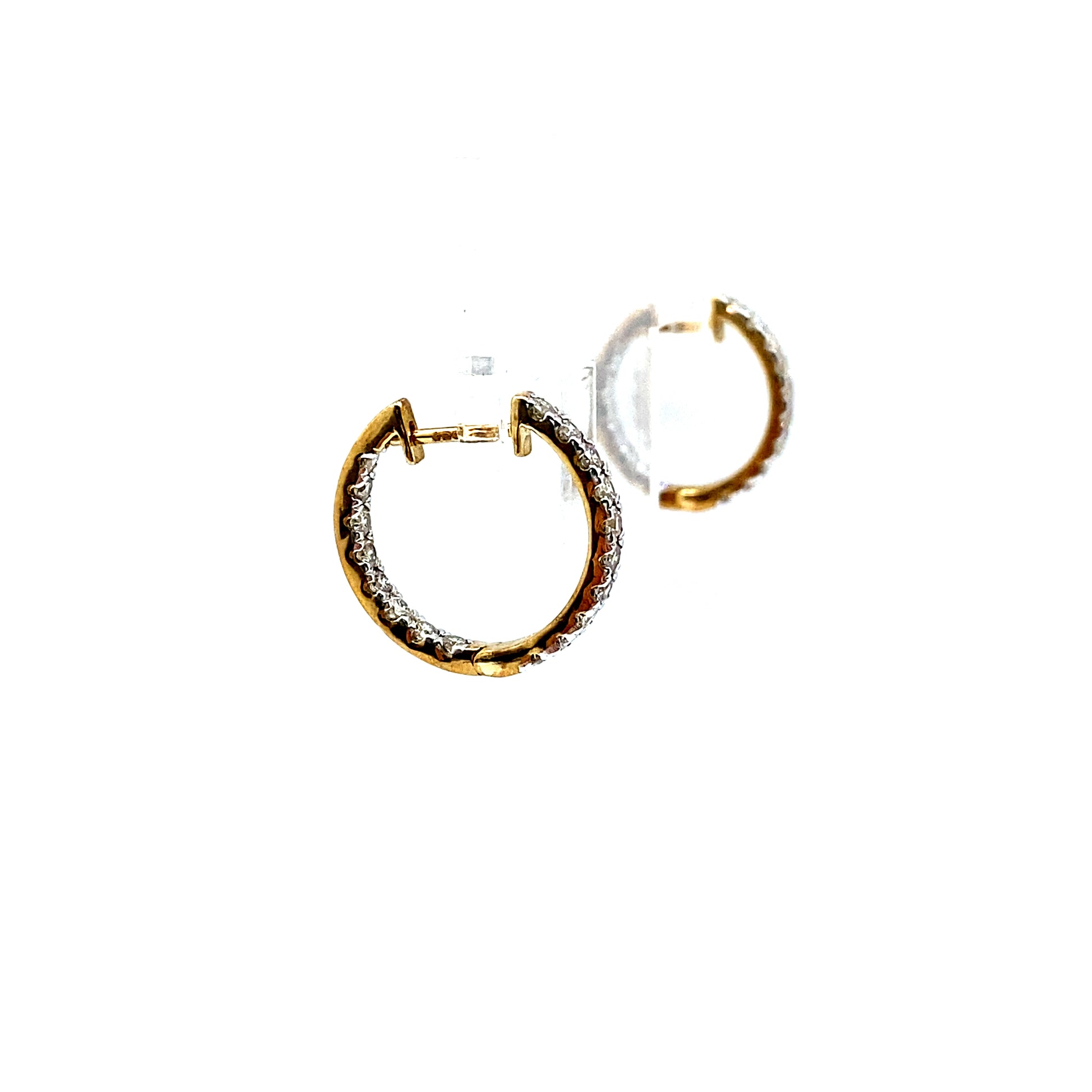 9ct Yellow Gold Inside & Out Brilliant Cut Diamond Hinged Hoop Earrings. Diamonds are F-G colour and VS clarity. Total diamond weight is 0.92cts