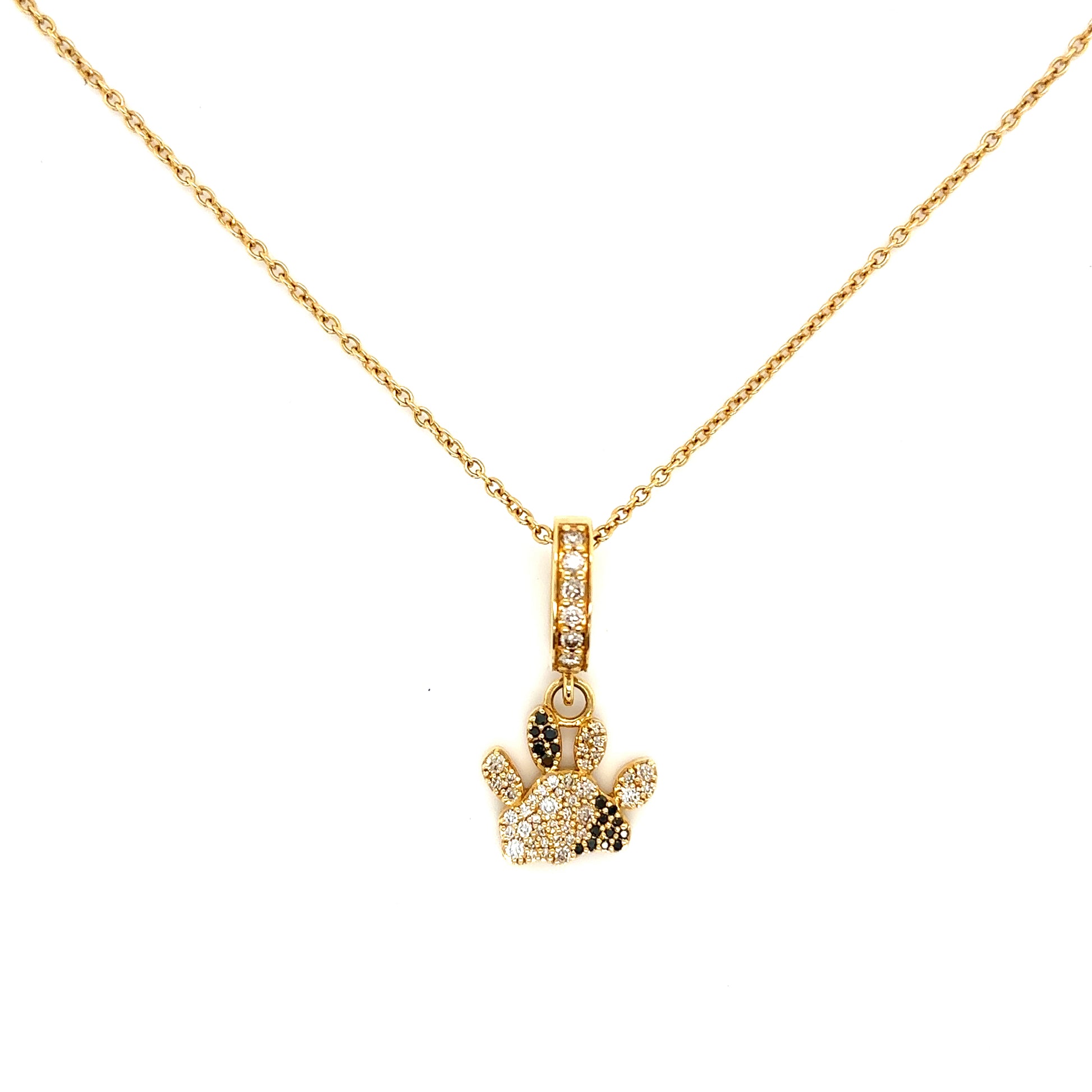 Bespoke Pet Paw Diamond Set "Lucky" Pendant Necklace in 18ct Yellow Gold Adjustable 18" to 16" Necklace