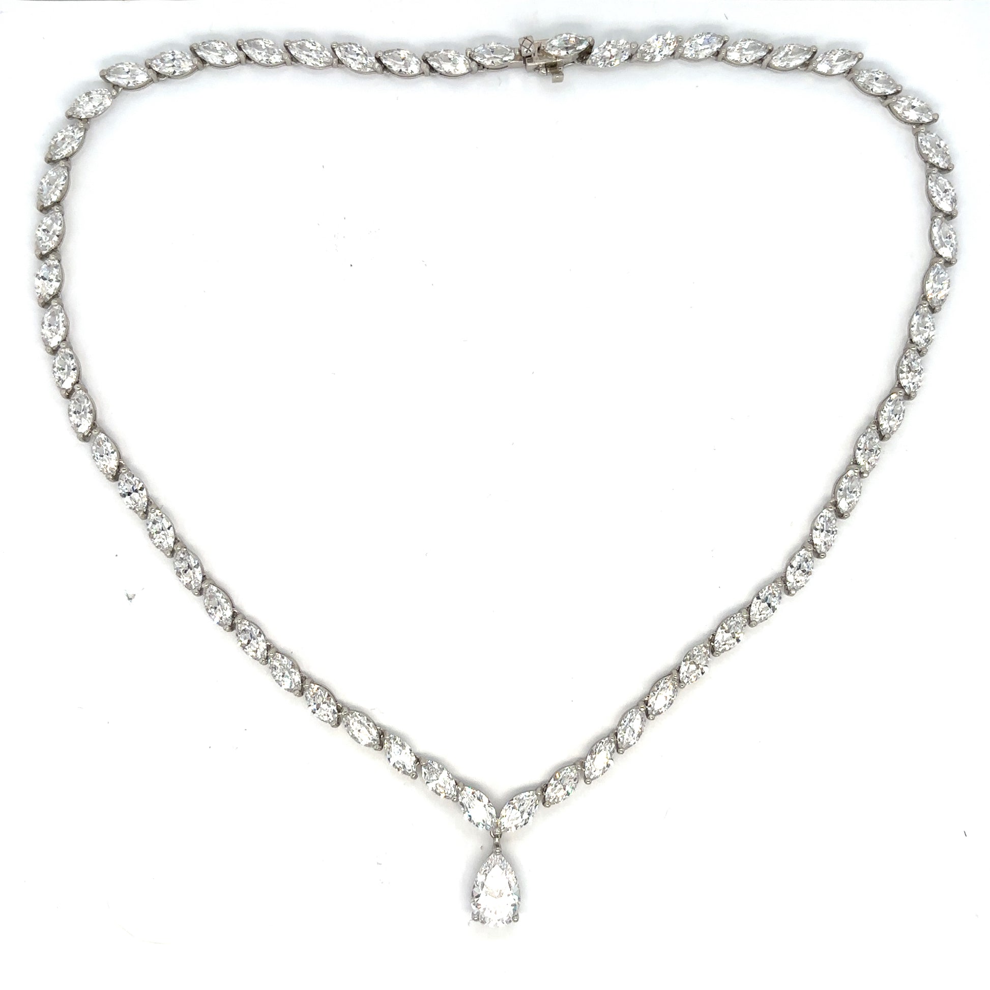 Bespoke Pear Cut Diamond Pendant and Marquise Cut Diamond Tennis Necklace