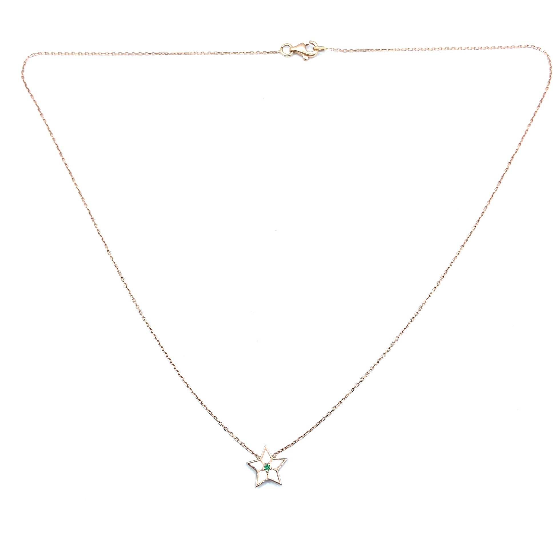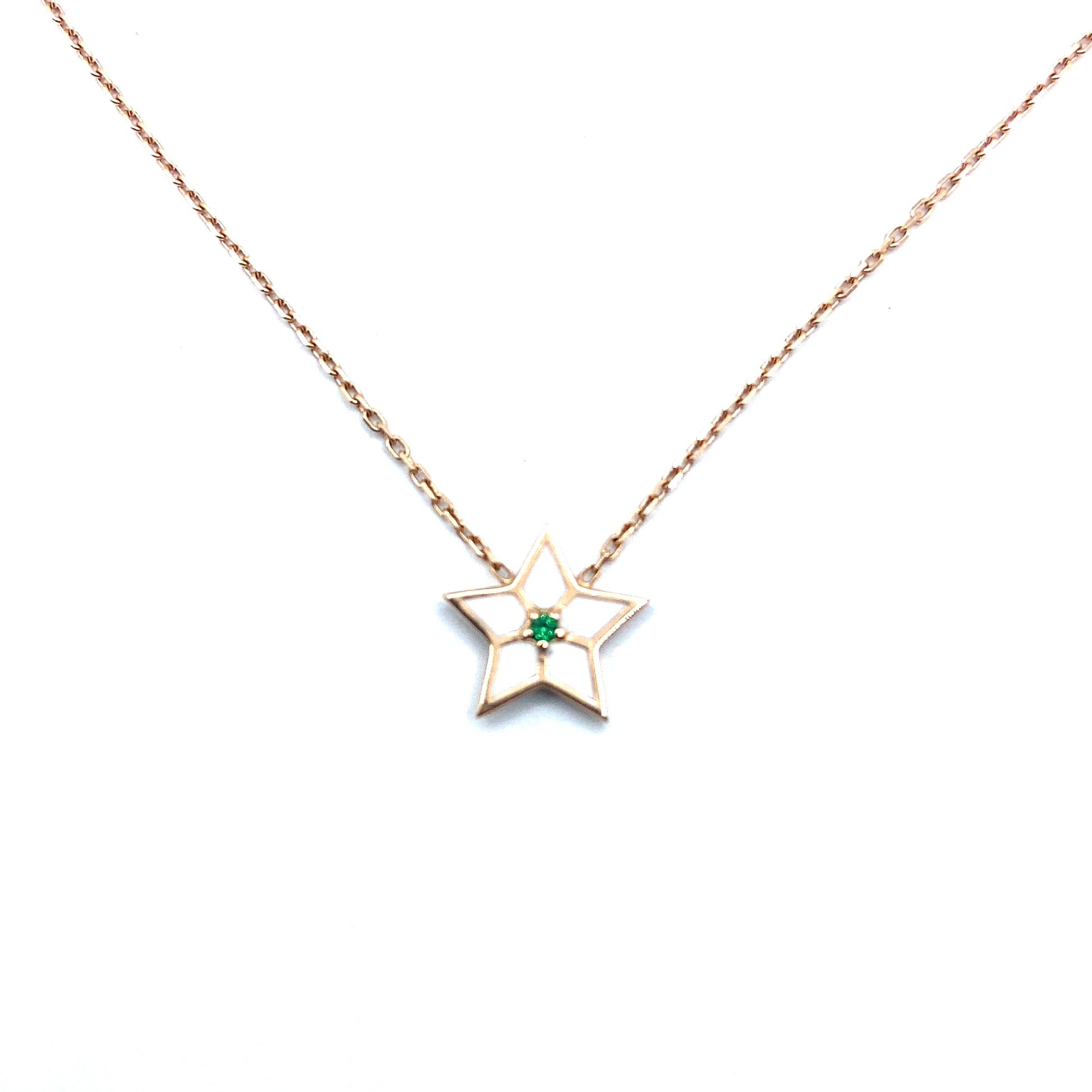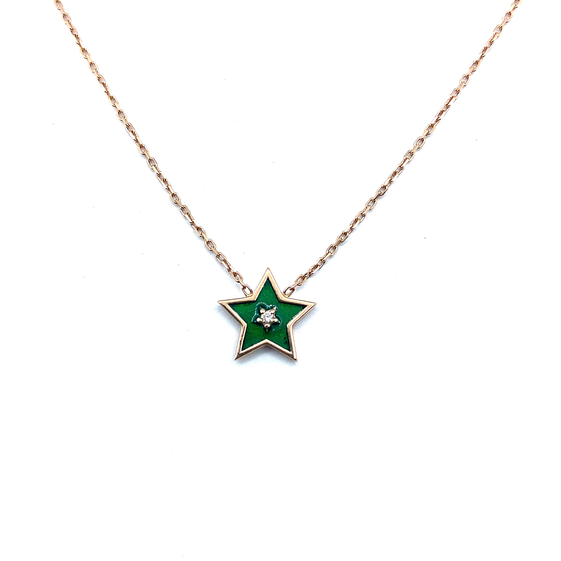 Emerald and Diamond, Green and White Enamel, 14ct Rose Gold Star Pendant Necklace