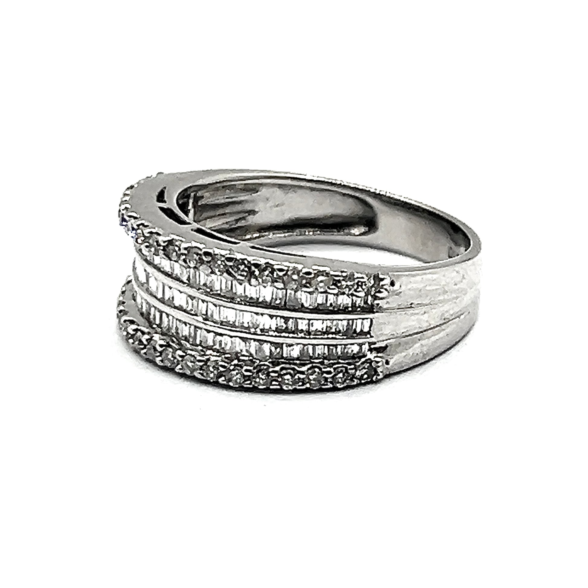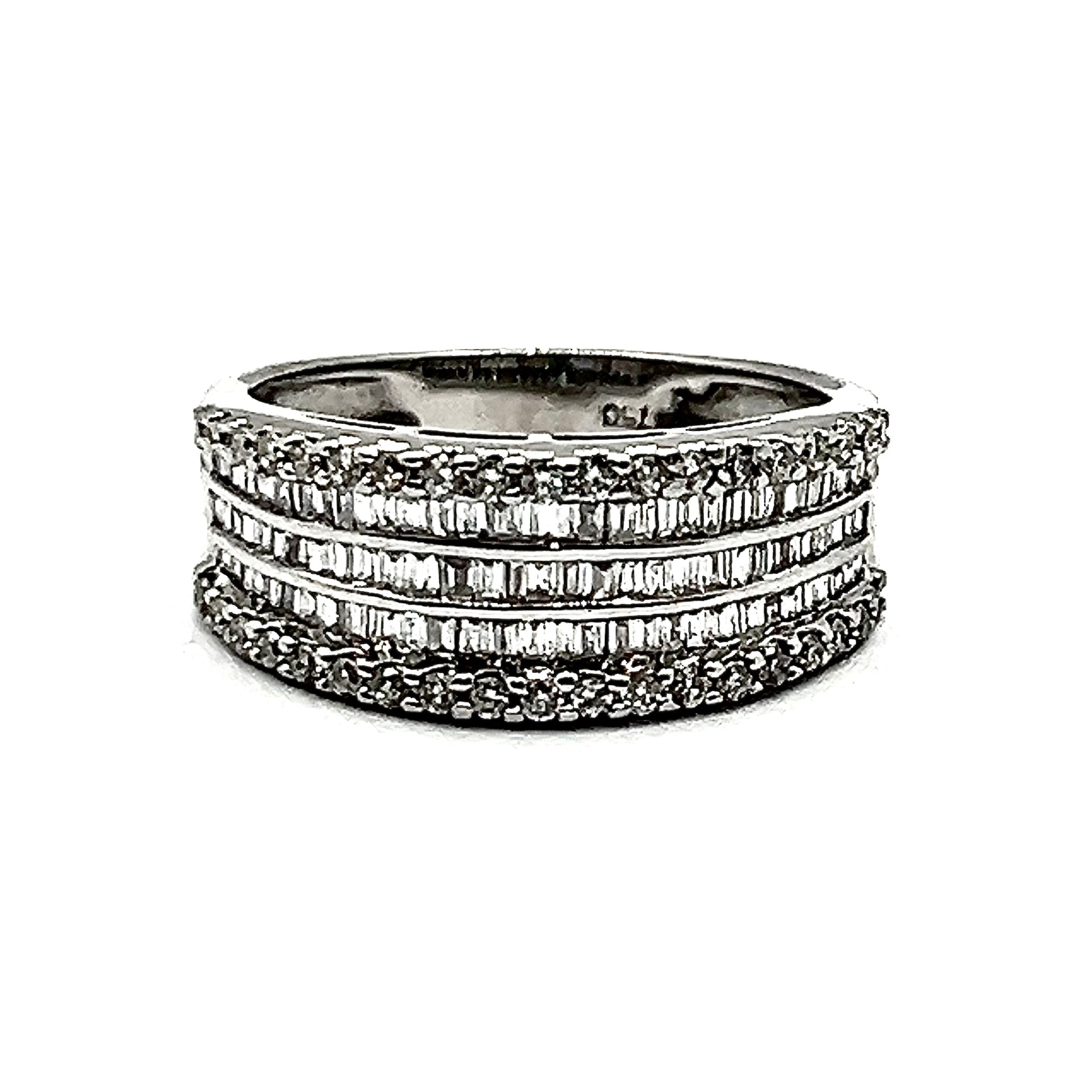 Sophisticated and timeless, our Five-Row Diamond Eternity Band adds a touch of elegance to any hand. Set in 18ct white gold, this band sparkles with four rows of brilliant diamonds, making it the perfect choice for a stunning and meaningful gift or a luxurious addition to your own jewellery collection.