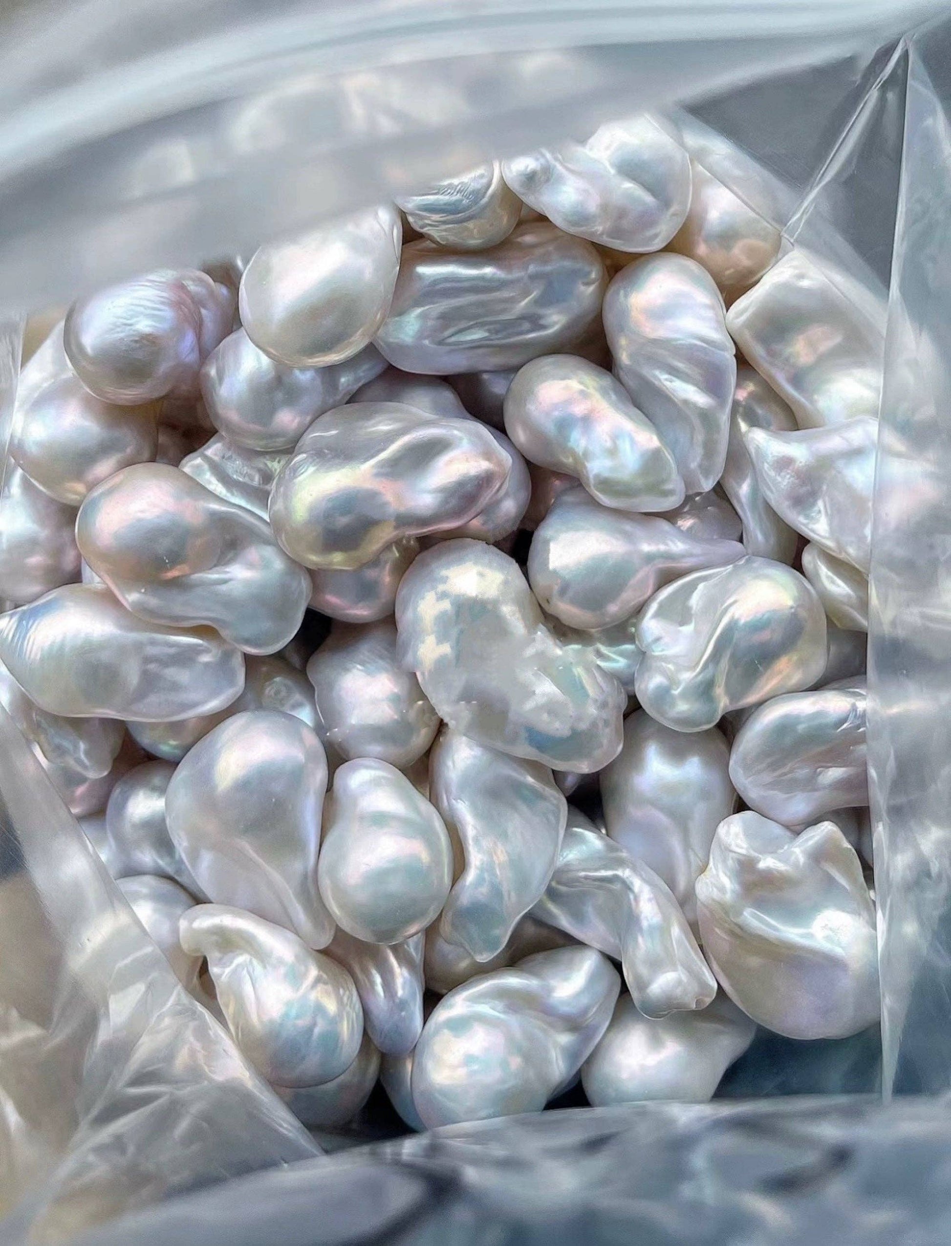 Handmade with care, each large baroque pearl bead measures between 25-30mm in length and 18 - 22mm in width, showcasing its own distinctive shape and vivid lustre.