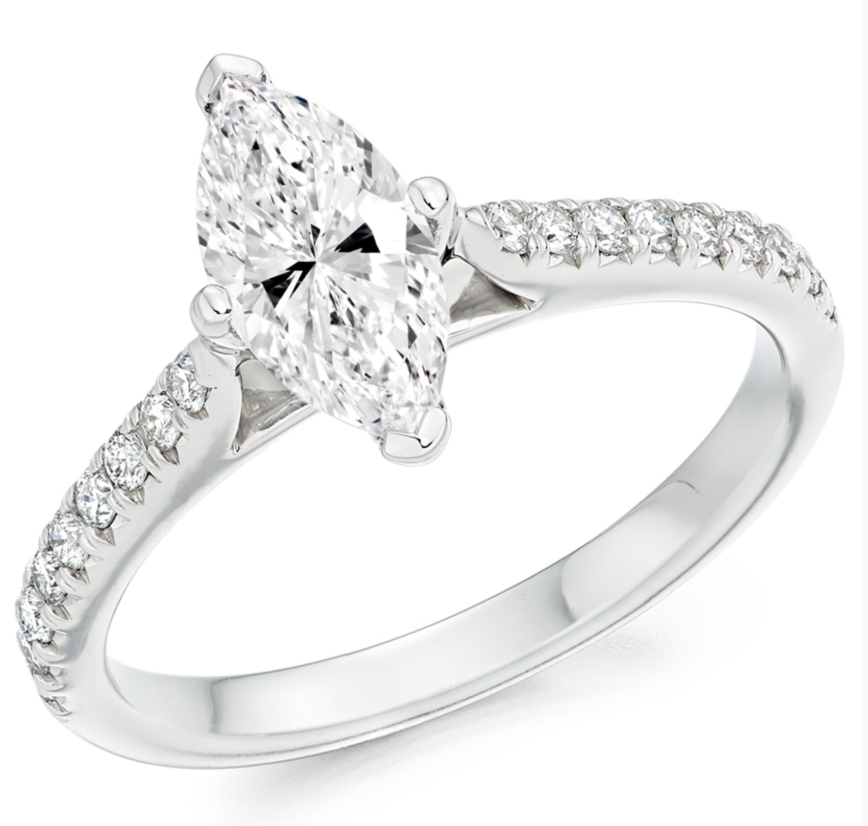 Marquise Cut Diamond Engagement Ring with Diamond Set Shoulders 0.85ct