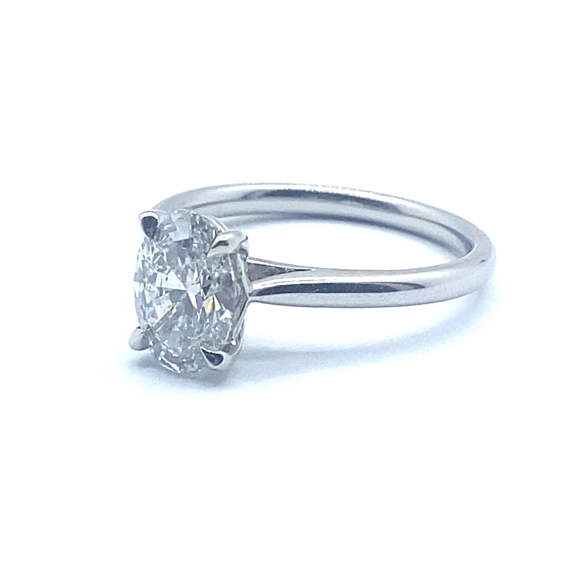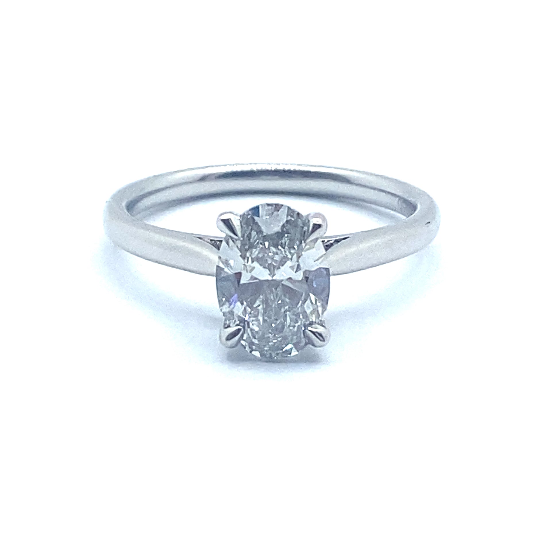 Crafted with beauty and elegance, this brilliant diamond engagement ring radiates an exquisite radiance. Featuring a 1.26ct, Lab Grown oval cut diamond solitaire ring, set in Platinum this beautiful piece will add a timelessly classic touch to everlasting love.