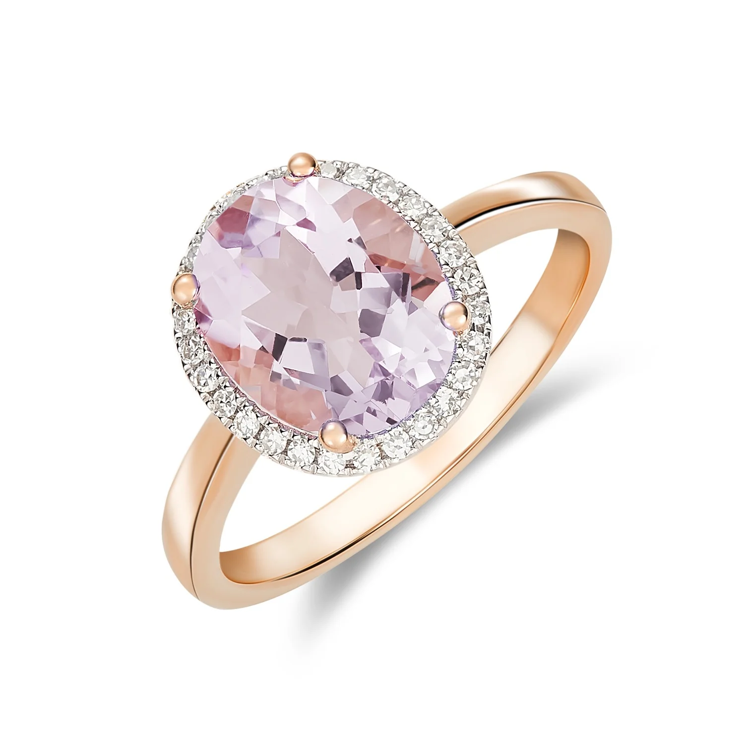 Oval Pink Amethyst & Diamond Cluster Ring Large in 9ct Rose Gold