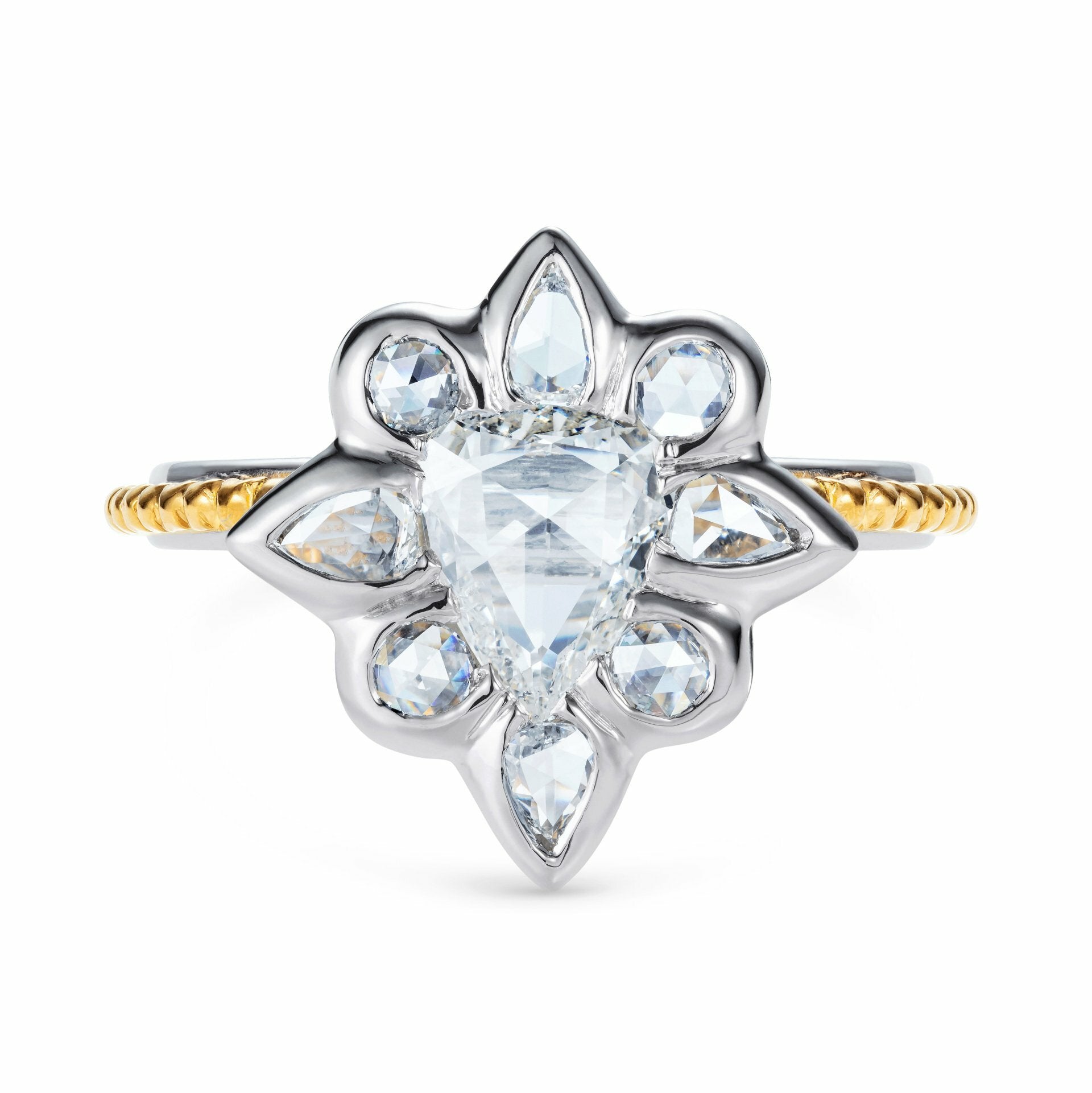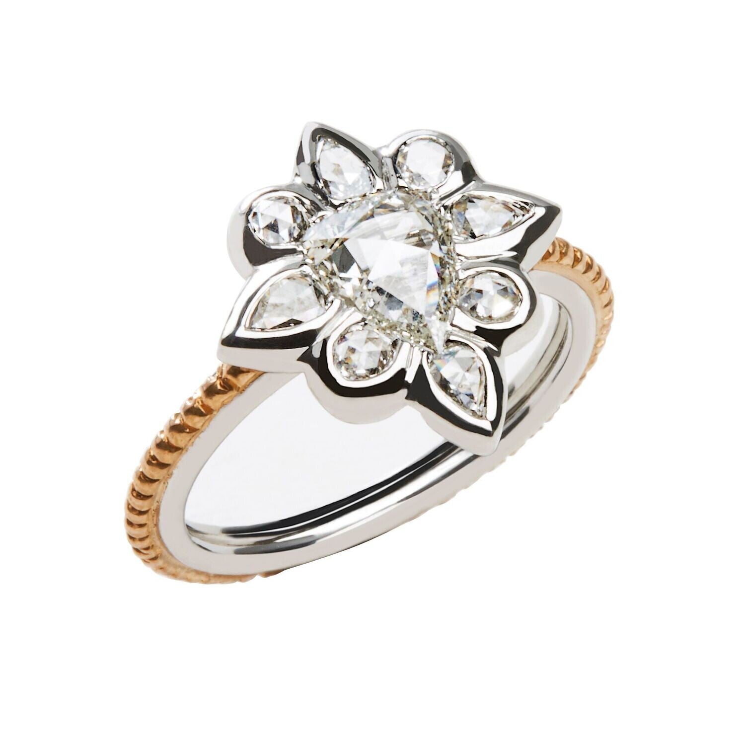 Rose Cut Pear Diamond Ring Platinum And 24ct Yellow Gold