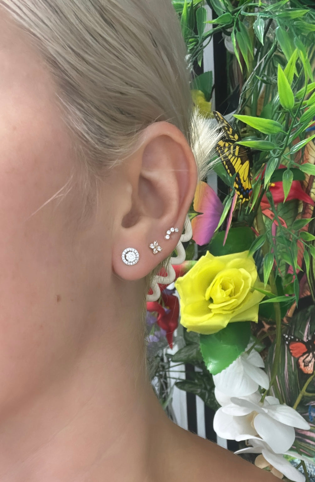 These earrings can be worn as solitaire studs or converted into halo stud earrings.