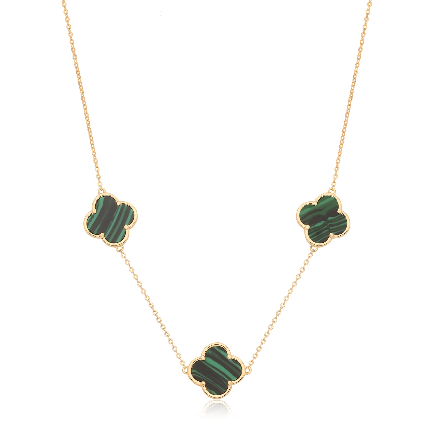 Silver Gold Plated Three In A Row Malachite Clover Pendant Necklace