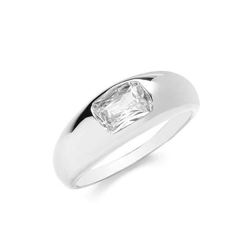 Sterling Silver East-West Cubic Zirconia Dome Ring