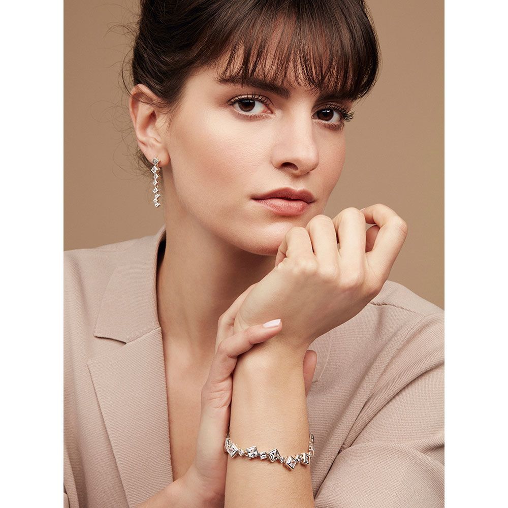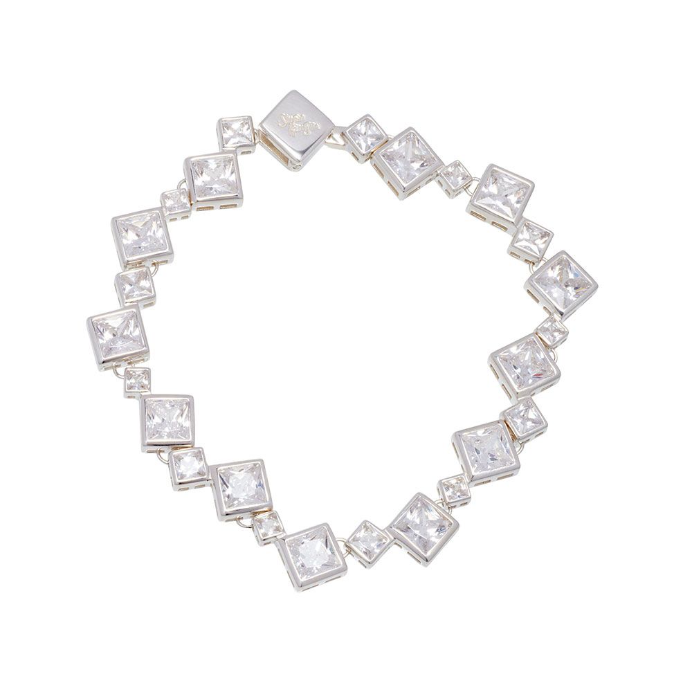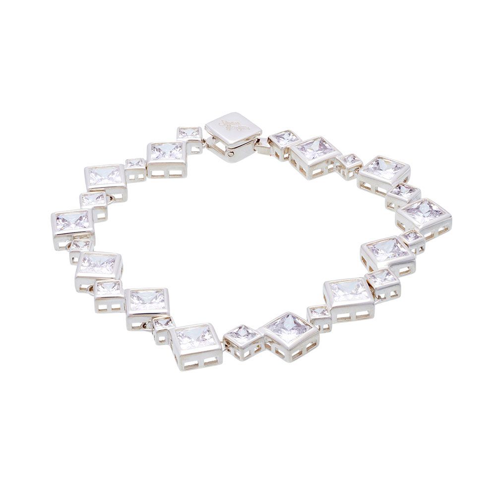 The Icicle bracelet is formed from a sequence of square cut Cubic Zirconia stones seamlessly interlinked at off-set angles following the natural flow of crystal formations. The natural formation of ice crystals is chaotic yet precisely geometric. The structure of the Icicle collection perfectly echoes nature's fractal geometry, as unpredictable and unique as a snowflake.