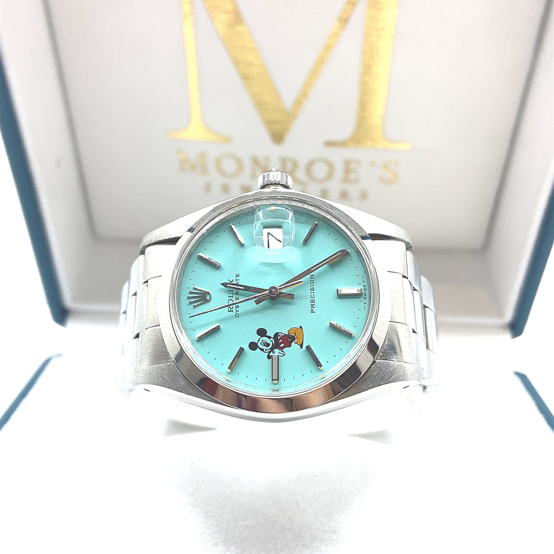 Vintage Rolex Precision Mickey Mouse Turquoise Staineless Steel Watch